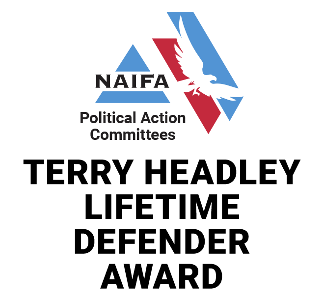 Terry Headley Lifetime Defender Award recognizes a NAIFA member who shows exemplary service to their profession, colleagues, and clients through their political advocacy and contributions to the PACs.